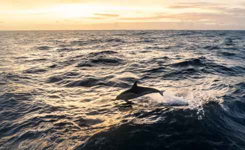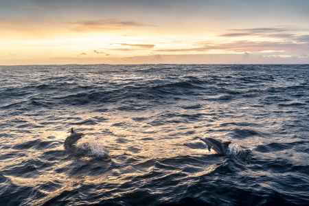 The sun appeared, dolphins giggling besides us.