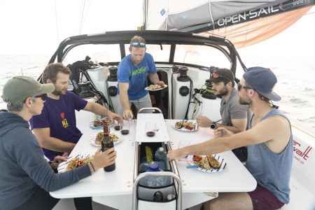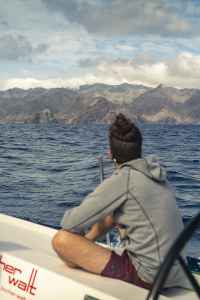 L’équipage a beau s’adonner aux dernières manœuvres avant les Antilles avec légèreté, l’océan continue d’imposer son lot d’imprévisible. Les sargasses, algues à la dérive, entravent la course du navire. Les sautes de vent et coups de lof menacent l’intégrité du spi qui avait déjà été malmené avant les Canaries. Mais à l’aube du dernier jour en mer, la troupe est partagée entre l’impatience de toucher terre et l’évocation nostalgique des bons moments. Après plus de 4000 milles nautiques, l’émotion se fait sentir à bord et chacun, à sa manière, profite au mieux des derniers instants qu’il lui reste sur le Luna Rosa. L’on finit par s’éprendre du frémissement des voiles, du gémissement des cordages et autres sons du bateau. L’attente se fait longue. On a beau scruter l’horizon, les îles censées être proches ne se dévoilent toujours pas. Jusqu’à ce que, « Terre en vue ! », l’effervescence s’empare de nos marins comblés…