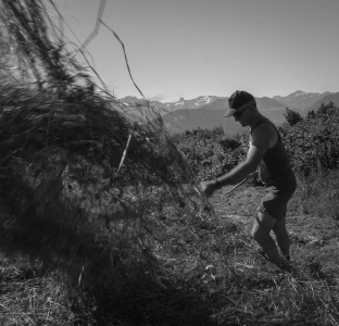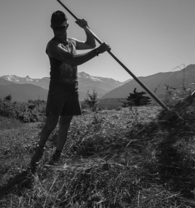 De Bisanne au col des Aravis, de la Forclaz de Queige aux Saisies, le Tour de France traverse nos pâturages ces jours-ci. A l’élan des coureurs fait écho l’adresse des faneurs. La tension musculaire, la grâce du geste ne sont-elles pas comparables ?