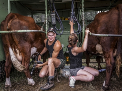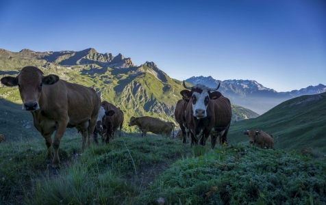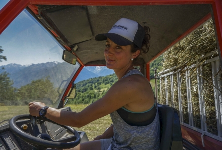 Sur le vaste plateau de Montaimont, à l’alpage de la Ramée du GAEC des Deux Montagnes, ce sont des femmes qui mènent la danse. Raymonde et Anaïs Pellissier, mère et fille, guident le troupeau face aux glaces du Pic de l’Etendard. La traite y est magnifiée de perles. La visite des génisses et des veaux se fait dans la suavité de tirililili qui évoquent Manon des Sources. Et lorsque le soleil inonde les lieux, les foins s’animent de la présence de la grand-mère parée pour l’occasion.