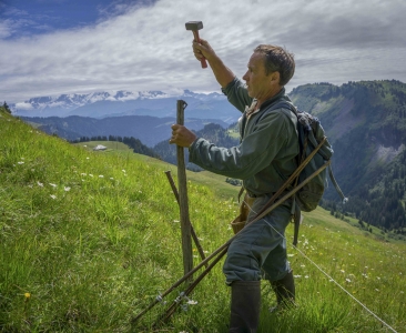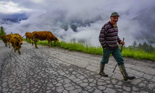 1er juin 2016, Florimond et Denis ont effectué leur première remue. Des fermes de la Picherie, sur les hauteurs d’Arêches, ils ont mené leurs bêtes au chalet de la Tête. Ce déplacement intermédiaire vers les « montagnettes » préfigure les migrations estivales vers les hauteurs. Egalement moniteur et compétiteur l’hiver, Florimond reproduit avec son associé un rituel ancien qui se soumet aux progrès de l’été…