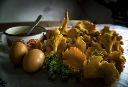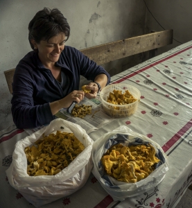 J’entre. Les nuées abreuvent les prés et nos lèvres s’humectent d’un café noir. Pierre et Véronique, la biathlète Julia et ses deux soeurs respirent les premiers soupçons d’automne. Et pour le plus grand bonheur de tous nos sens s’obstine le chant des girolles, l’aubade aux chanterelles !