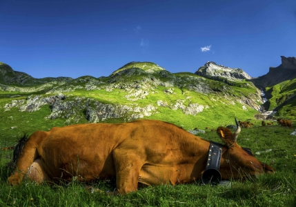 Lovées entre les Aravis, le Mont Blanc et l’immense tourbière des Saisies, les pentes de Crest-Voland battaient au tempo de l’été. Fièvre des foins et cadences des traites entraînèrent Fabrice, Nathan, Gabin et moi-même dans leur valse impétueuse. Dans l’étourdissement de cette nature vrombissante, vous excuserez ainsi ce léger roupillon…