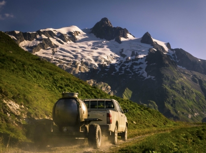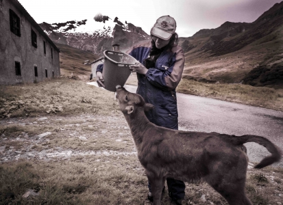 En pénétrant le domaine des Rullier à la Ville des Glaciers, on touche comme aux frontières du monde. Sous le sacre de la chapelle familiale, l’on s’introduit dans l’une de ces enclaves secrètes et recluses qui finissent par obséder l’esprit. Se déployant sous les mosaïques bleuâtres de l’Aiguille des Glaciers, l’alpage y reluit des micas qui l’enceignent. Doux chatoiement d’argent ou flamboiement terrible selon qu’il y ait de l’orage ou du soleil. Mais quelle que soit l’humeur du ciel, Gérard, Martine, Bruno et Marine répondent présent pour « monter aux vaches », badiner sans relâche ou nourrir joyeusement la flamme du foyer.