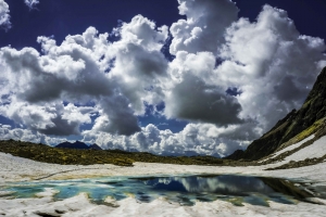 Qu’on la redoute ou qu’on l’admire, la montagne est une arène mobile et ondoyante. L’eau dans tous ses états, particulièrement, lui prête des visages insaisissables. Cette évanescence se compose de vapeurs élusives, de cristaux en équilibre ou de sources inconstantes. Elle témoigne combien les cimes résultent d’une gravité et d’une instabilité permanentes.