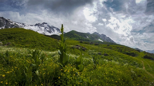Les orages passés, le haut Beaufortain se fait magnanime. De la Pierra Menta au lac d’Amour, du Cormet d’Arêches à Roselend, c’est une explosion de pensées, d’anémones et de gentianes sur un parterre émeraude. Tandis qu’au loin, l’horizon s’épanouit sur les cimes ivoire du Mont Blanc.