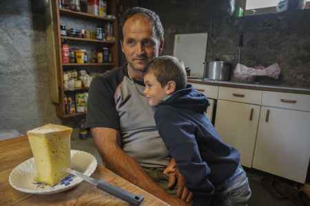 Alors que s’effilochèrent les troubles de l’orage, les dernières gouttes d’argent perlaient en hommage. Ma visite à l’alpage des Rossets en Tarentaise ce jeudi 13 juillet me dévoila un brasier de chaleur humaine. Les toiles de lin employées pour recueillir le caillé blanchissaient dans la brise fraîche. Mais au cœur du foyer, trois générations de la famille Poccard s’unissaient en un clair-obscur digne des plus grand maîtres baroques. Jean, Pierre et l’espiègle petit Zian, Anne-Sophie et Anaïs composaient un dégradé fervent et harmonieux, généreux et bienveillant.