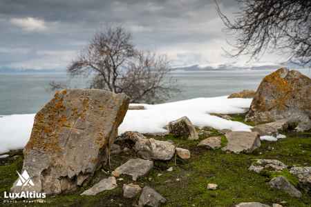 So, faced with the imperative of arriving in Erbil in time for the Newroz, Berivan and I put off tackling the tough route (on the way back perhaps?) and opted for the bus. We did however take the time to visit the Island of Akdamar, with its 10thcentury Armenian cathedral of the Saint Cross. Once the seat of the ancient and repressed Catholicosate of Aghtamar (an independent see of the Armenian apostolic church) it owes its survival to its position in Lake Van and the pink, volcanic andesite rock out of which it is built. Under not-quite blossoming almond trees is a cemetery with bas-relief sculptures. The steles express a refinement snatched from times of uncertainty and discord, while mineral astragals impose their inconquerable grace on the growth of a land’s hostile moss.